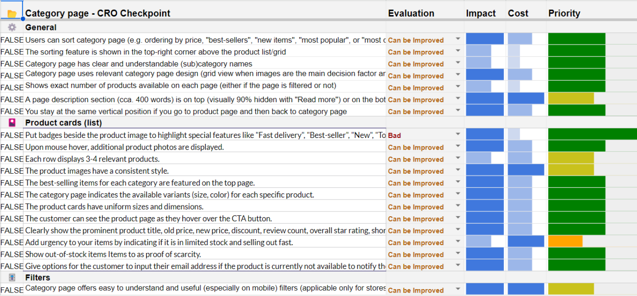 📊 Category page - CRO Checkpoint